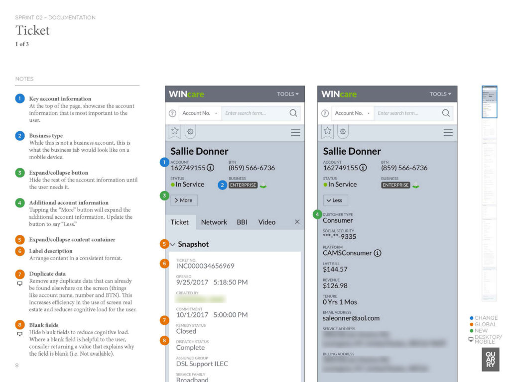 Wincare is Windstream’s primary tool in their call centres for identifying and enrolling customers, diagnosing issues, and booking service calls. The user experience limited the capability of call center staff to quickly and efficiently solve customer issues. Quarry was hired to run workshops and UX design sprints to help improve the experience for call centre technicians, and ultimately for Windstream customers.