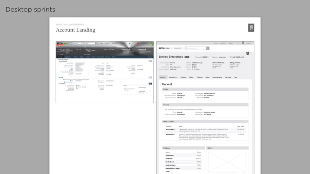 To kick the project off, we did a thorough heuristic analysis of every page of the application in desktop and mobile. We identified UX issues and inconsistencies and documented every occurrence in a workbook we delivered to Windstream. With a full analysis complete, we identified common themes to focus on during the UX sprints.