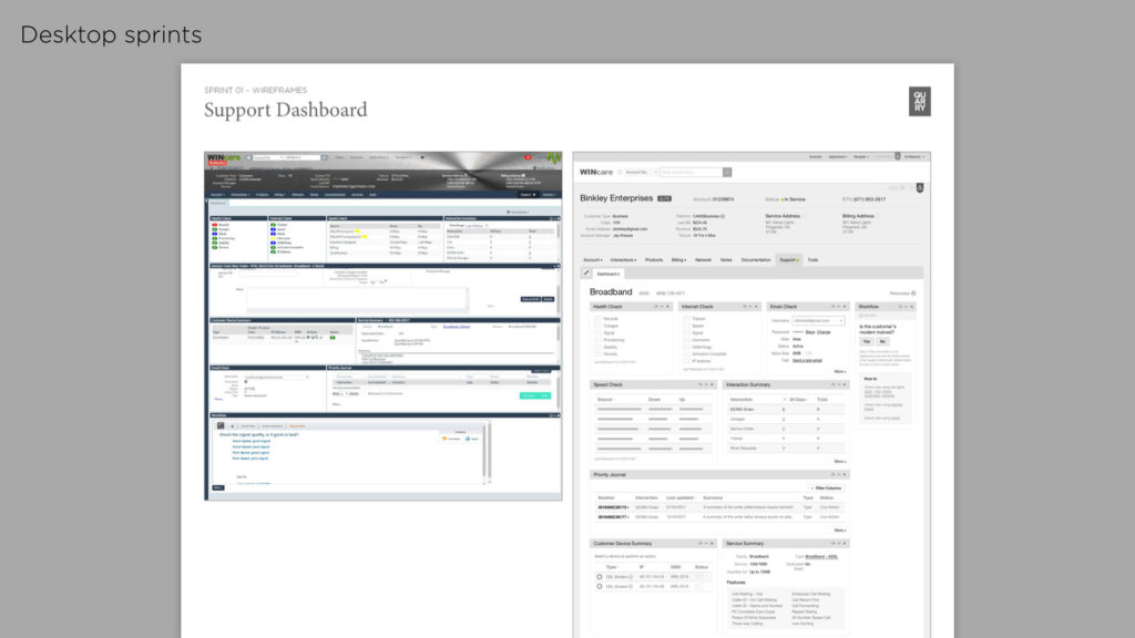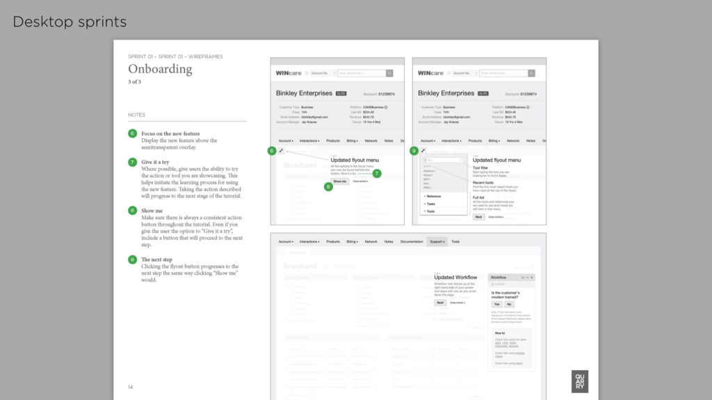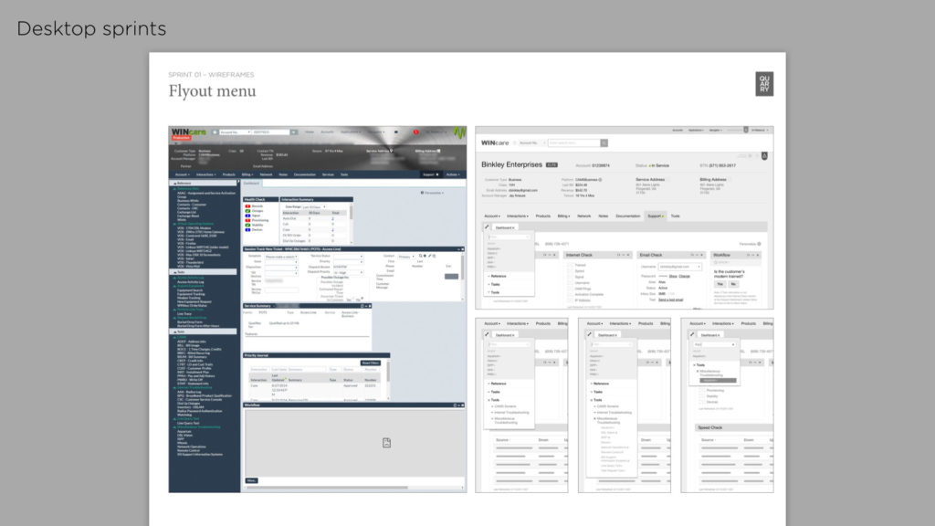 The Wincare project was a by-product of an initial field-research study performed by Quarry’s Insights team. They shadowed call centres all over the US and identified a number of areas (including Wincare) that could be improved. With the research complete and Wincare identified as a area of opportunity, we began workshops and UX sprints.