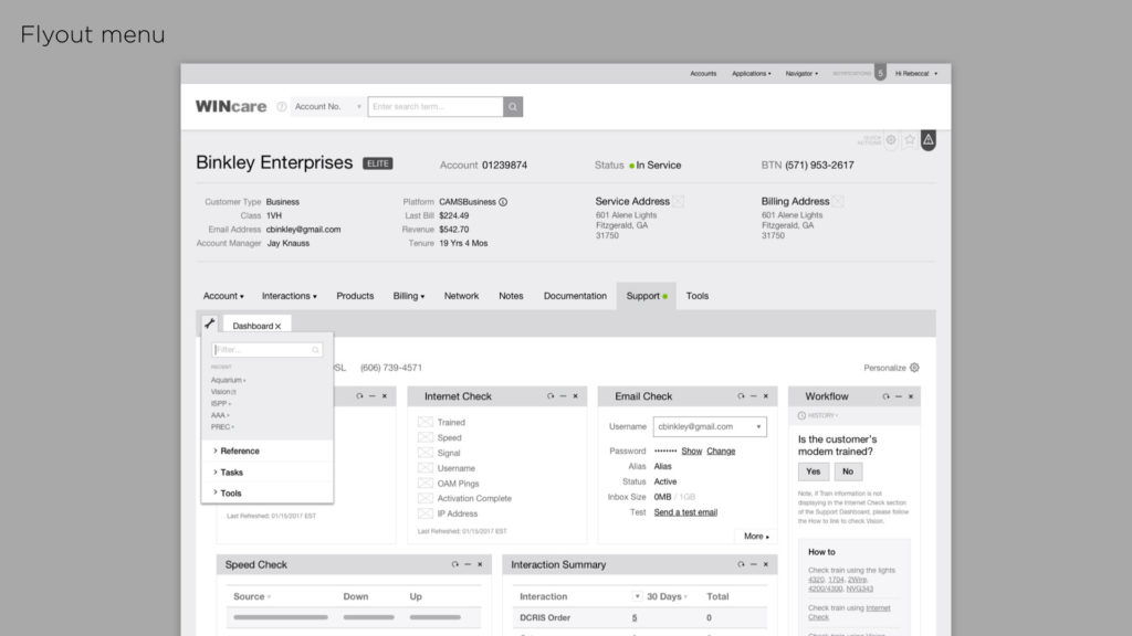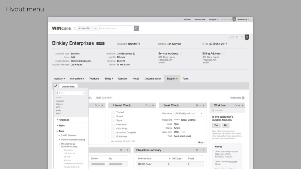 We ended up with a comprehensive set of documents and clickable prototypes that defined a solid direction for the Windstream engineering team for both their desktop and mobile Wincare experience.