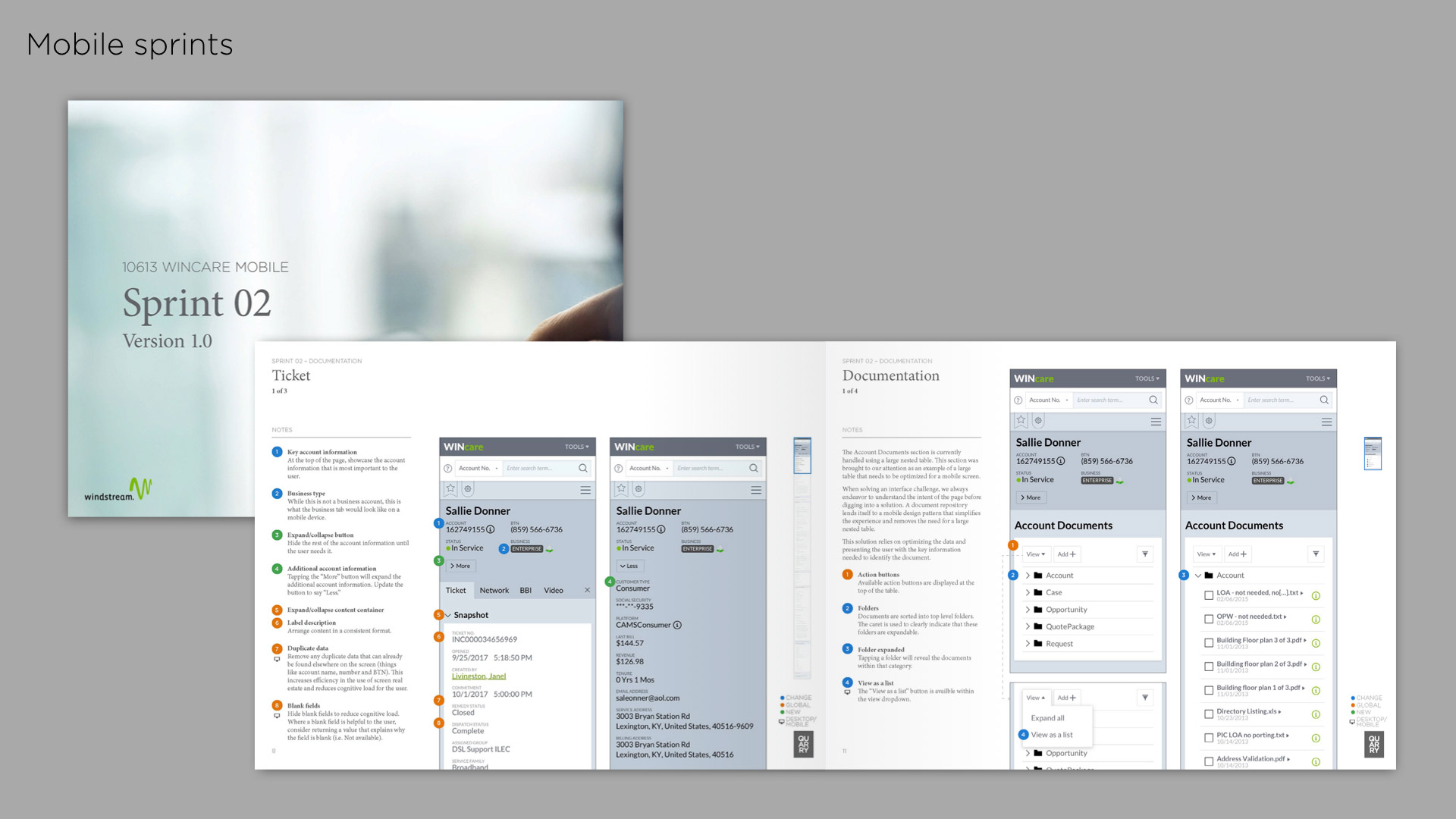 We ended up with a comprehensive set of documents and clickable prototypes that defined a solid direction for the Windstream engineering team for both their desktop and mobile Wincare experience.