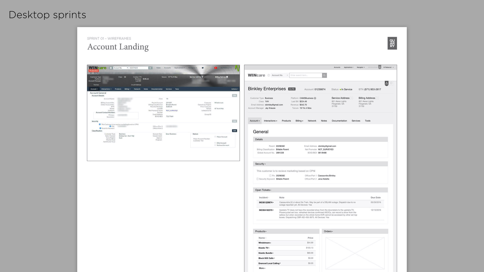 The Wincare project was a by-product of an initial field-research study performed by Quarry’s Insights team. They shadowed call centres all over the US and identified a number of areas (including Wincare) that could be improved. With the research complete and Wincare identified as a area of opportunity, we began workshops and UX sprints.